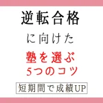 と考えている方に向けて、次の記事で逆転合格に向けた塾の選び方を解説していますから、あわせてお読みください。